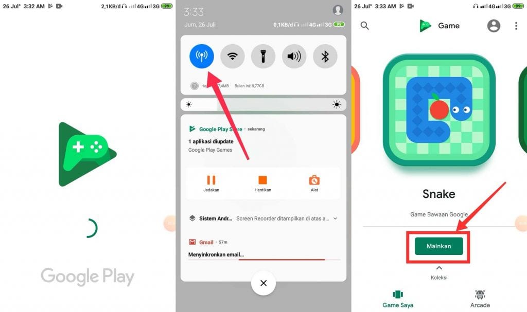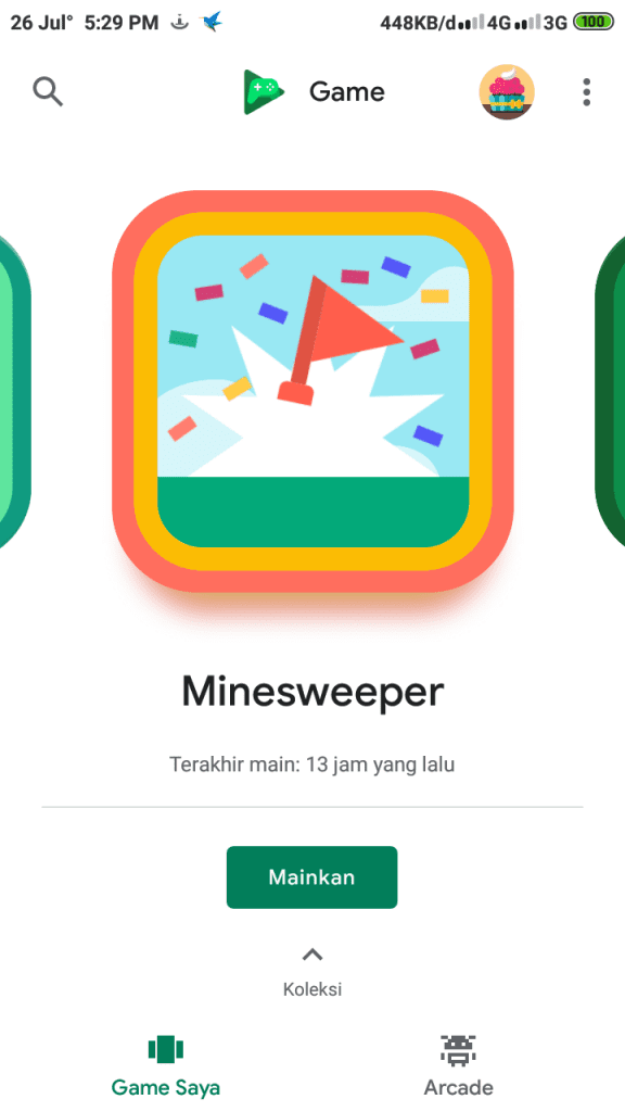 3. Jika sudah terinstall dengan update terbaru, kamu buka. Namun apabila saat masuk mengalami stuck di logo, atau loading lama. Pada status bar, matikan koneksi data internet. Dan setelah terbuka kamu bisa melihat beberapa game yang bisa dimainkan. Klik tombol mainkan untuk memulai permainan.