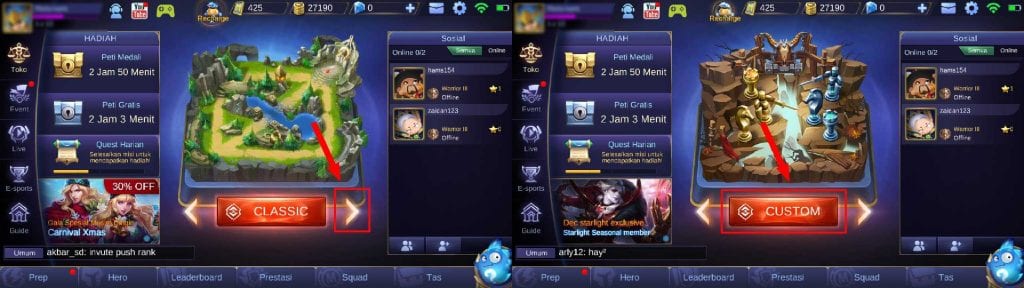 2. Jika sudah masuk sekarang pindah mode game menjadi Custom.