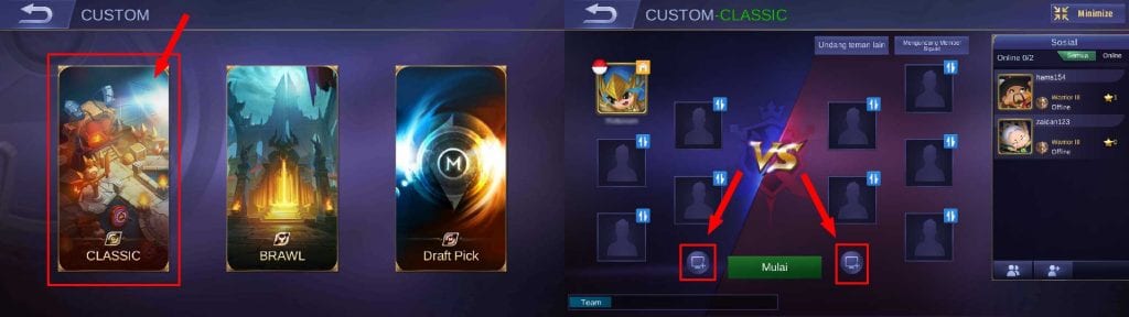 3. Selanjutnya pilih Classic dan isi slot player yang kosong dengan memilih icon komputer dan kemudian tap mulai.