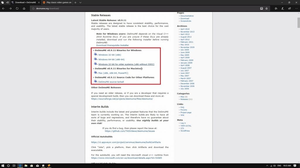 Disini kamu akan ditampilkan halaman website untuk mengunduh desmume emulator. Ada banyak emulator Nintendo ds yang sudah dikembangkan, namun desmume merupakan salah satu yang terbaik. Maka dari itu disarankan menggunakan desmume