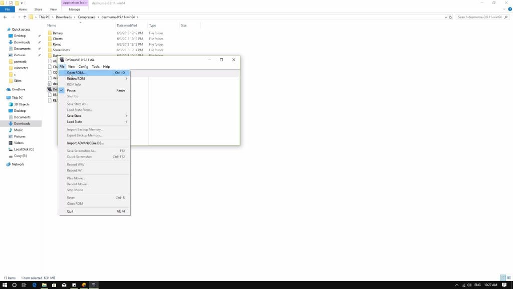 9. Buka desmume , pilih menu file dan pilih open ROM