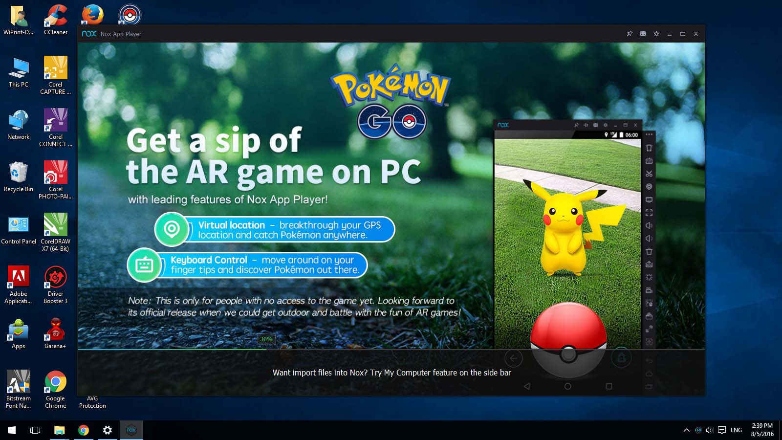 3. Taruh apk Pokemon Go Pokemongo_0.29.2_inwepo.co.apk di desktop, Nox APPÂ akan meng-install automatis apk pokemon go yang ada di desktop setelah kita menjalankan Nox APP.