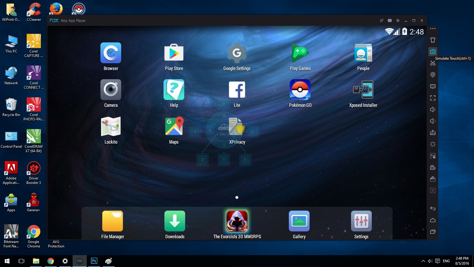 - Tunggu Sampai Nox menginstall pokemon Go apk secara automatis. Lalu klik icon smart touch di pojok kanan atas.