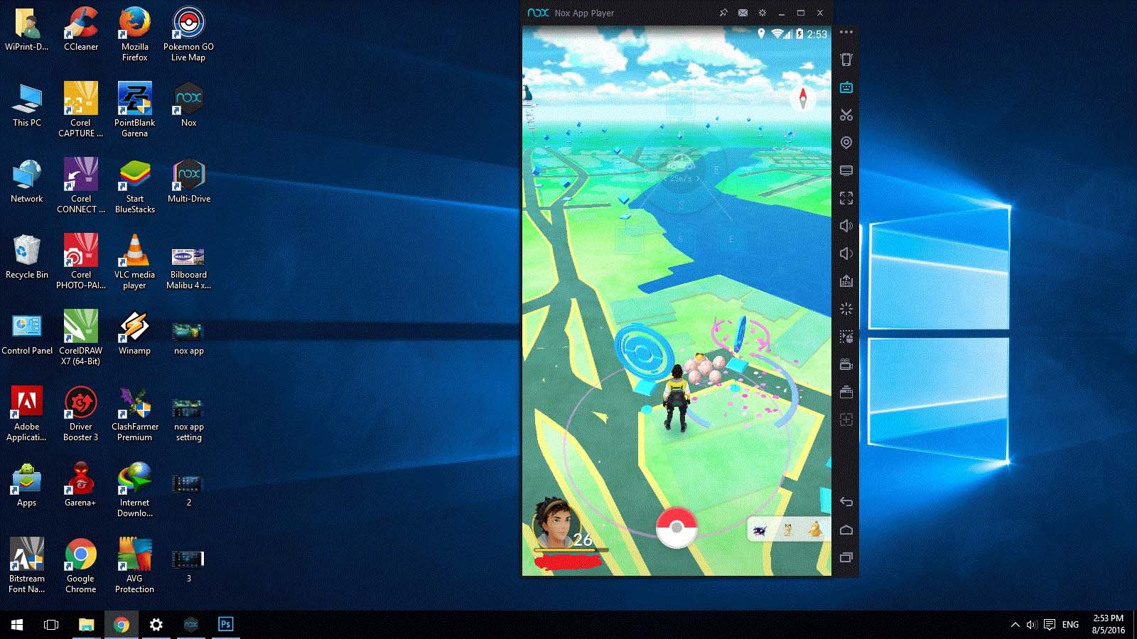 - Buka Pokemon Go dan taraaaaaaa…. Siap untuk menjelajah melalui PC menggunakan Nox APP!