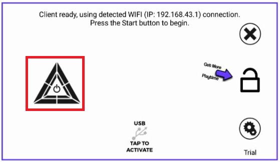 7. Lalu klik tombol ON/OFF yang berbentuk segitiga di sudut kanan bawah aplikasi (lihat gambar di bawah ini).