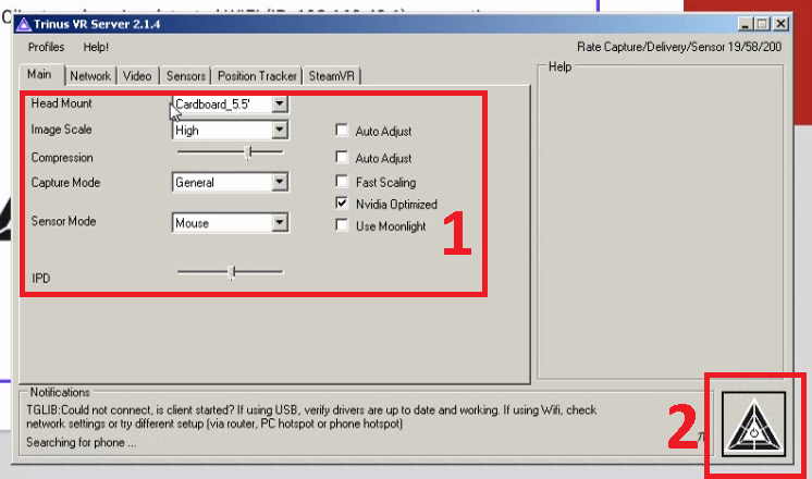 Lalu atur kesesuaian ukuran gadget VR kamu dengan pengaturan yang sudah disediakan di Trinus.