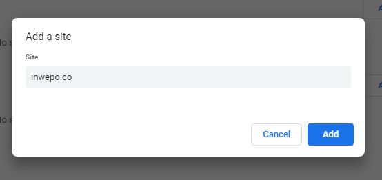 6. Tambahkan situs website yang kamu ingin memblok JavaScript pada situs tersebut ke dalam daftar blok list. Setelah itu, klik Add.