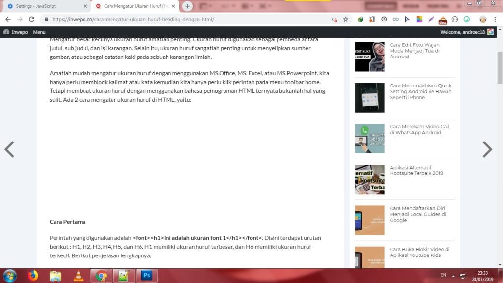 7. Silahkan kamu masukkan situs website yang telah kamu tambahkan ke dalam daftar blok untuk JavaScript. Lihat hasilnya, ada beberapa kode perintah dan widget tidak bekerja dengan baik, karena sistem kerja Javascript pada widget tersebut telah dinonaktifkan.