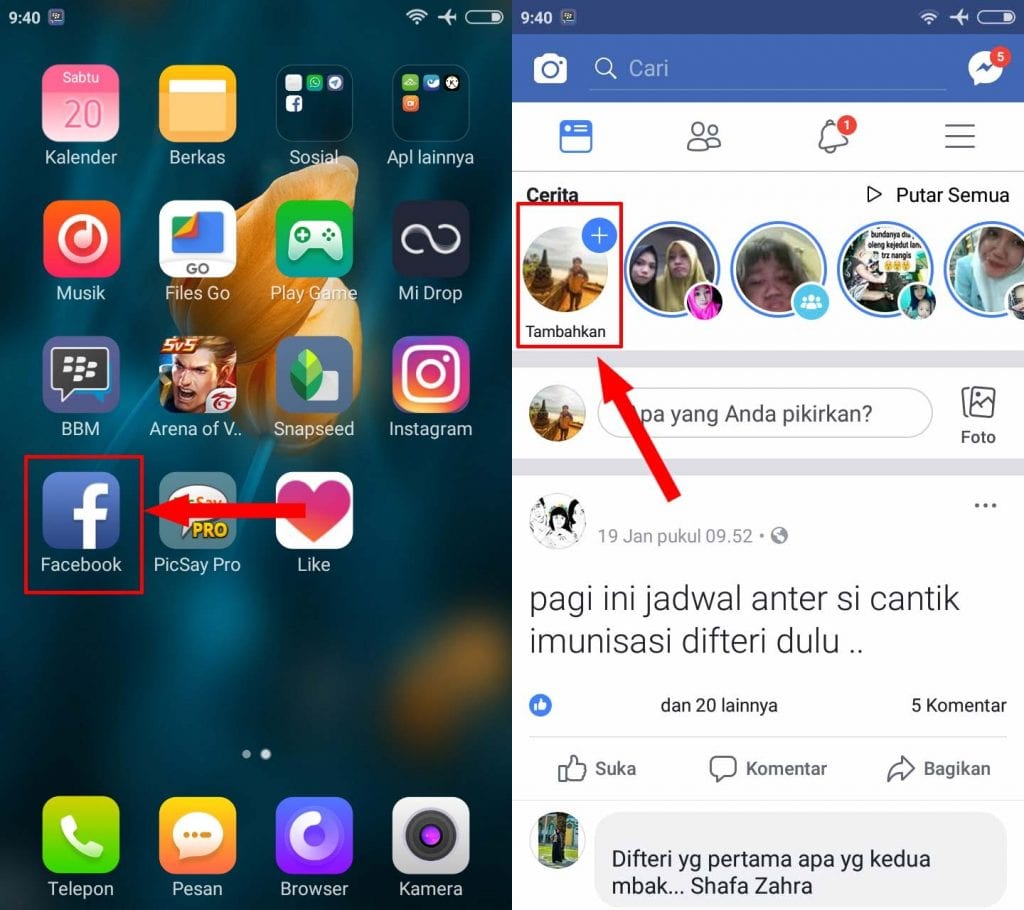 2. Buka aplikasi Facebook dan login menggunakan akun Facebook kamu. Selanjutnya tap pada bagian “Tambahkan Cerita“.