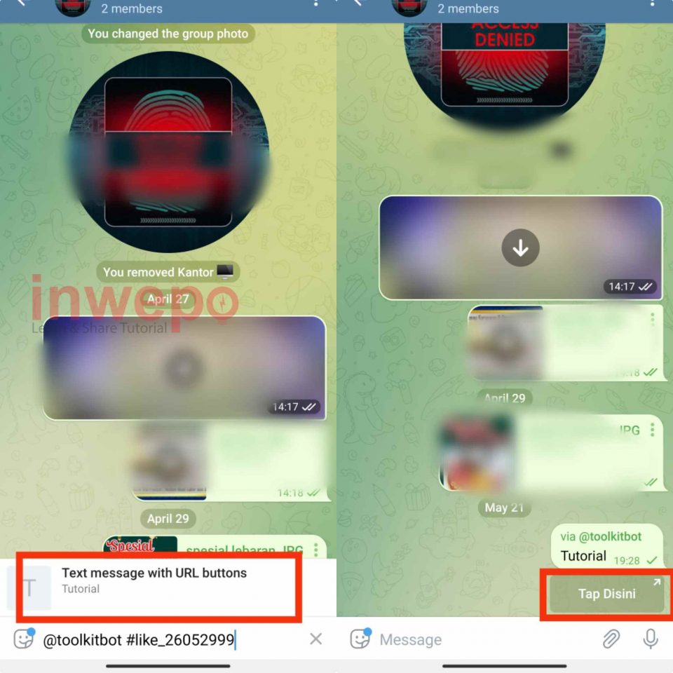3. Masukkan link mu pada kolom pesan chat, lalu beri nama pada tombol yang akan digunakan. Jika semua sudah siap tap menu publish dan kirim ke grup atau channel yang ingin kamu share button link.