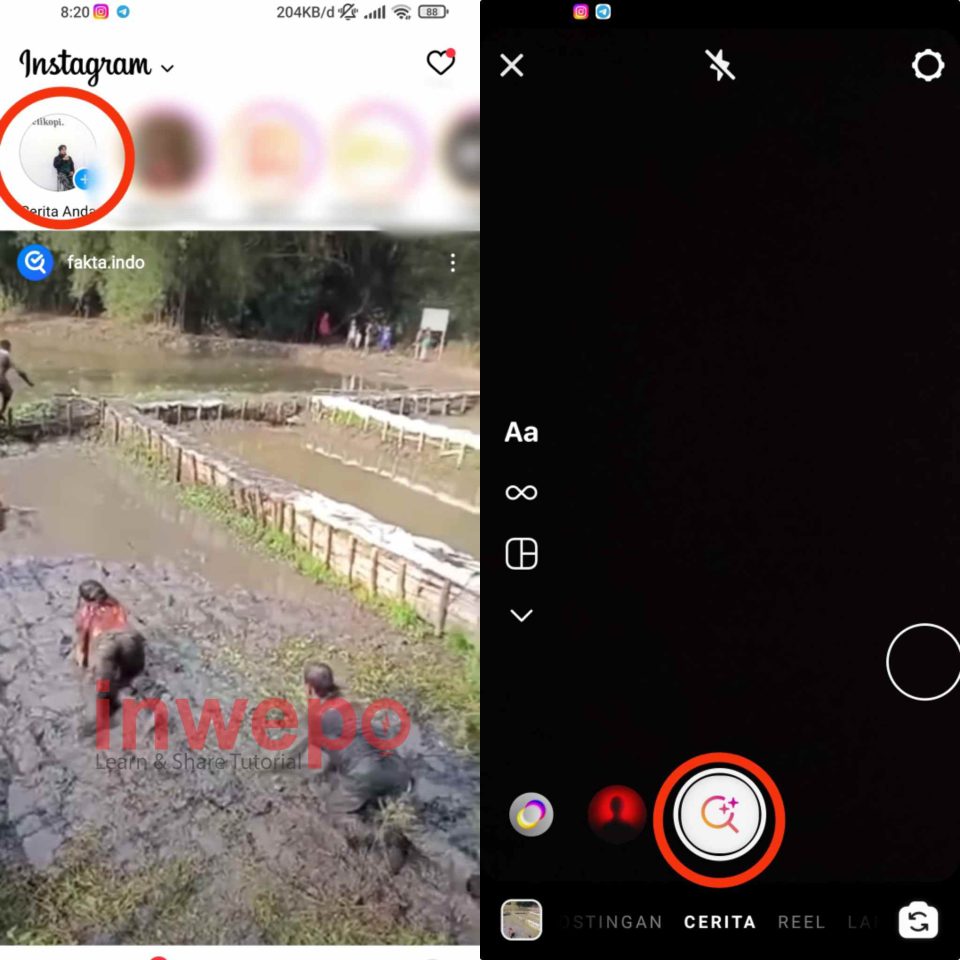 1. Kalian buka aplikasi Instagram masing-masing lalu tap menu Story atau buat story baru. Di bagian filter geser ke kiri hingga menemukan icon search filter.