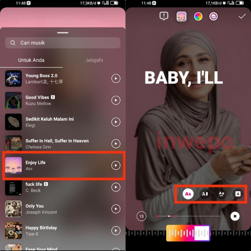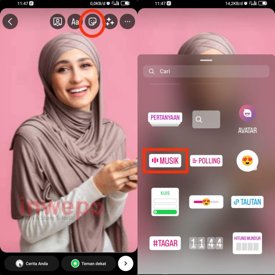 Agar story musik mu jadi tak membosankan, inwepo ada triknya nih! Agar lirik yang ditambahkan pada story bisa berada dibelakang objek. Mau tau caranya bagaimana?