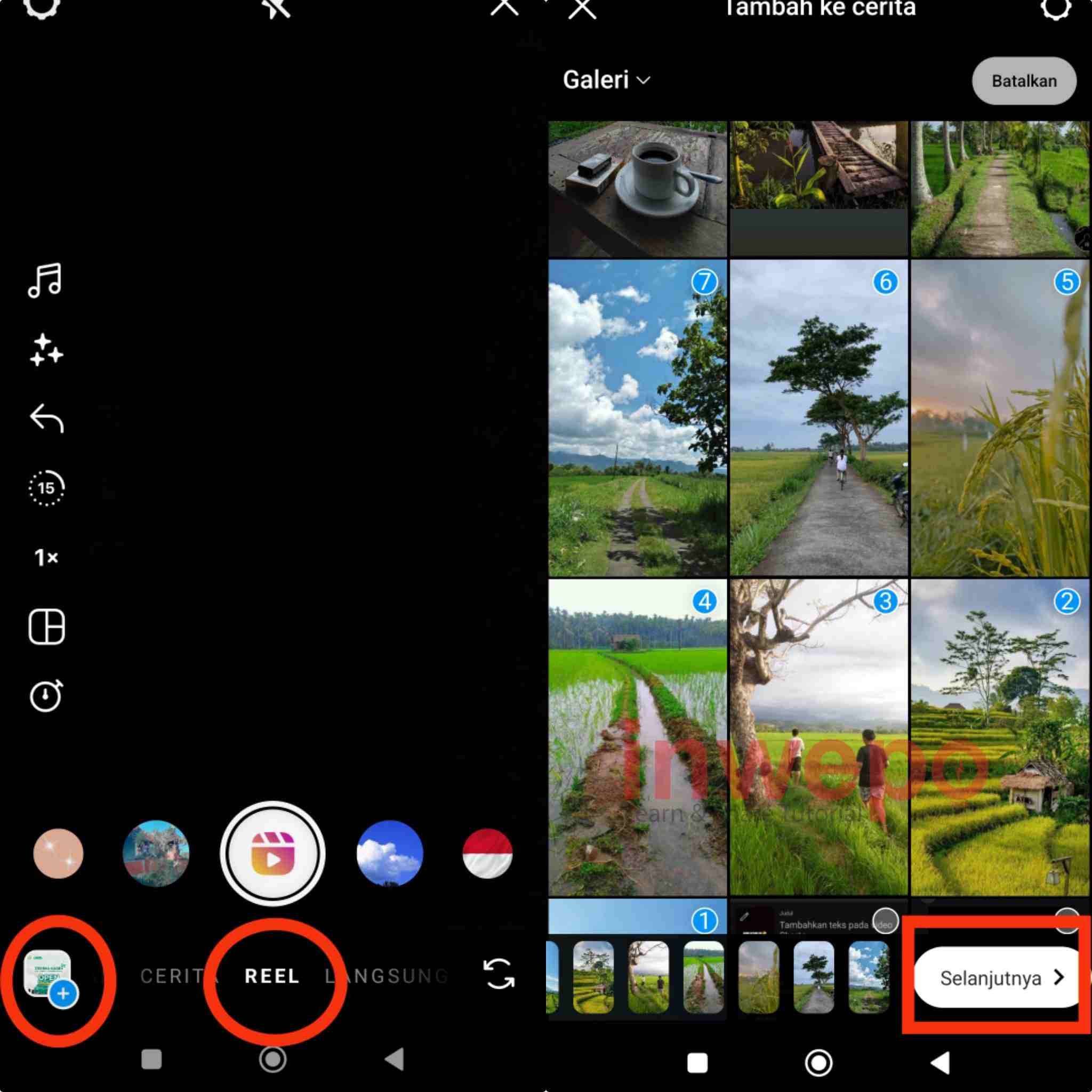 1. Buka menu pembuat reels lalu pilih icon picture di bagian bawah untuk menambahkan foto. Masukkan beberapa foto untuk membuat template.
