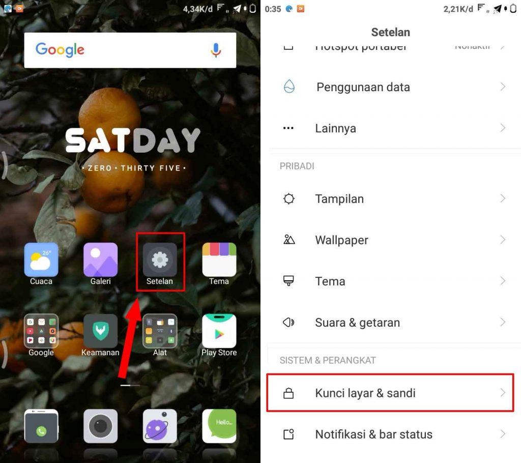 2. Buka menu Setelan pilih Kunci layar & sandi.