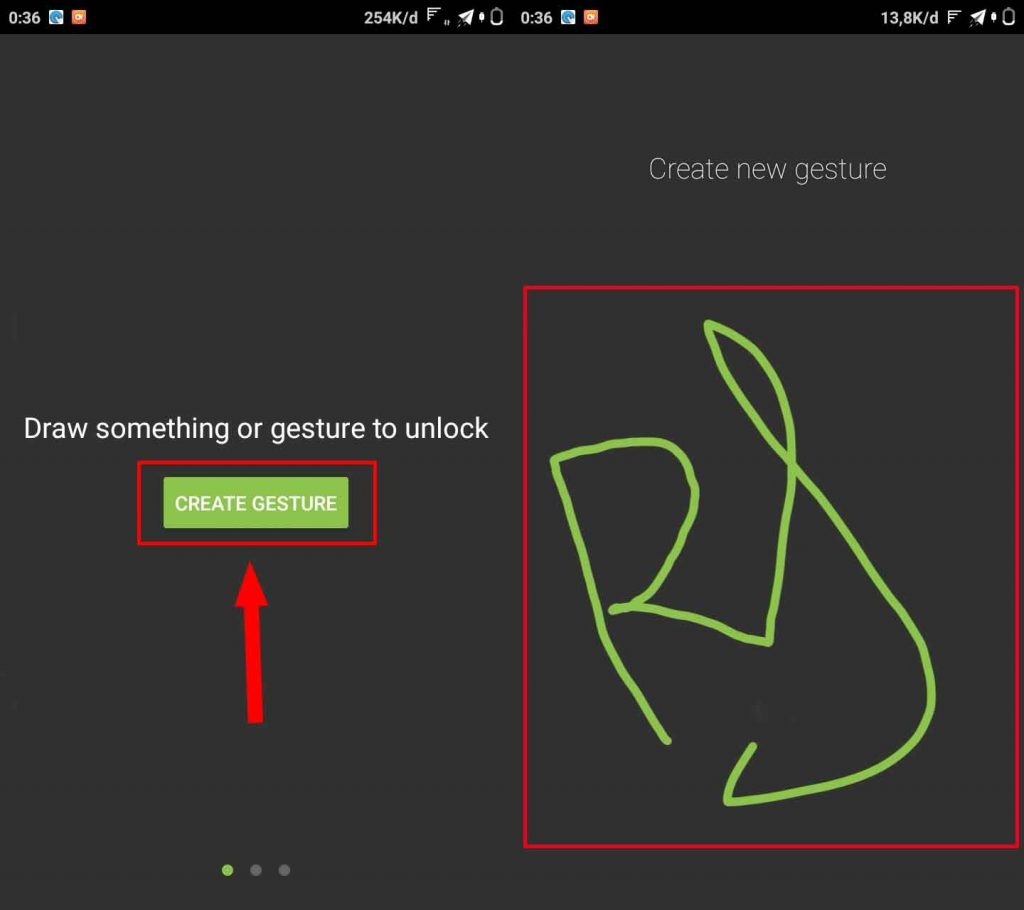 4. Buka aplikasi Layar Kunci Isyarat atau Gesture Lock Screen lalu tap pada CREATE GESTURE. Kemudian gambarkan tanda tangan kamu pada layar.