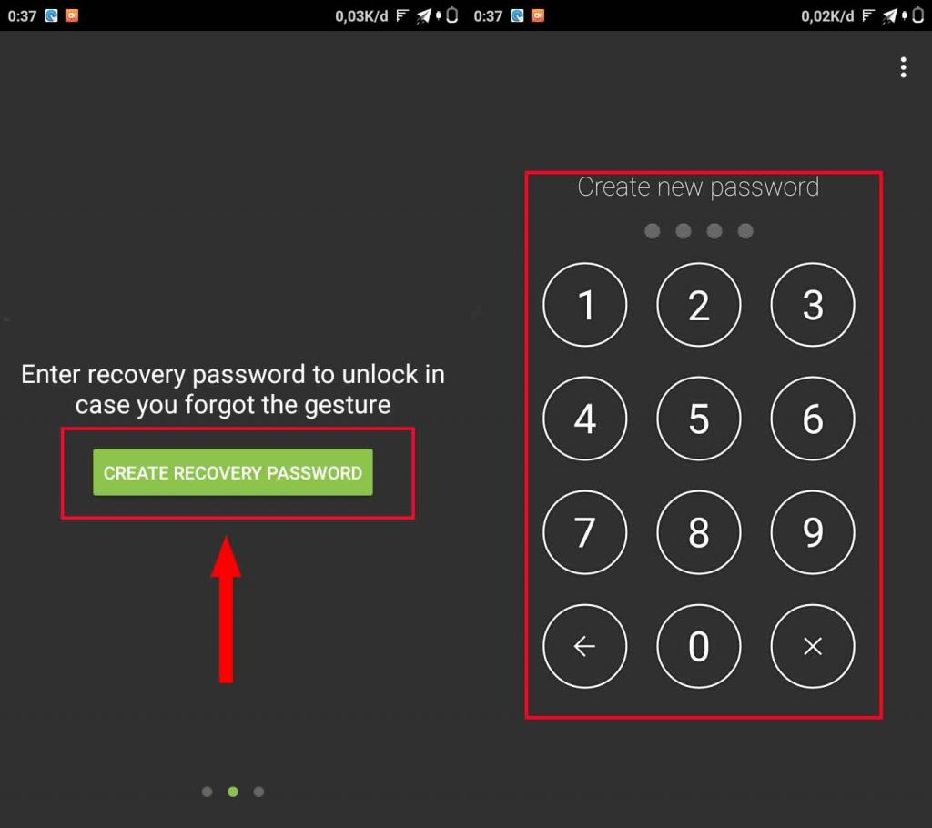 5. Berikutnya tap CREATE RECOVERY PASSWORD untuk membuat password cadangan apabila lupa dengan pola tanda tangan yang sudah kita buat sebelumnya.