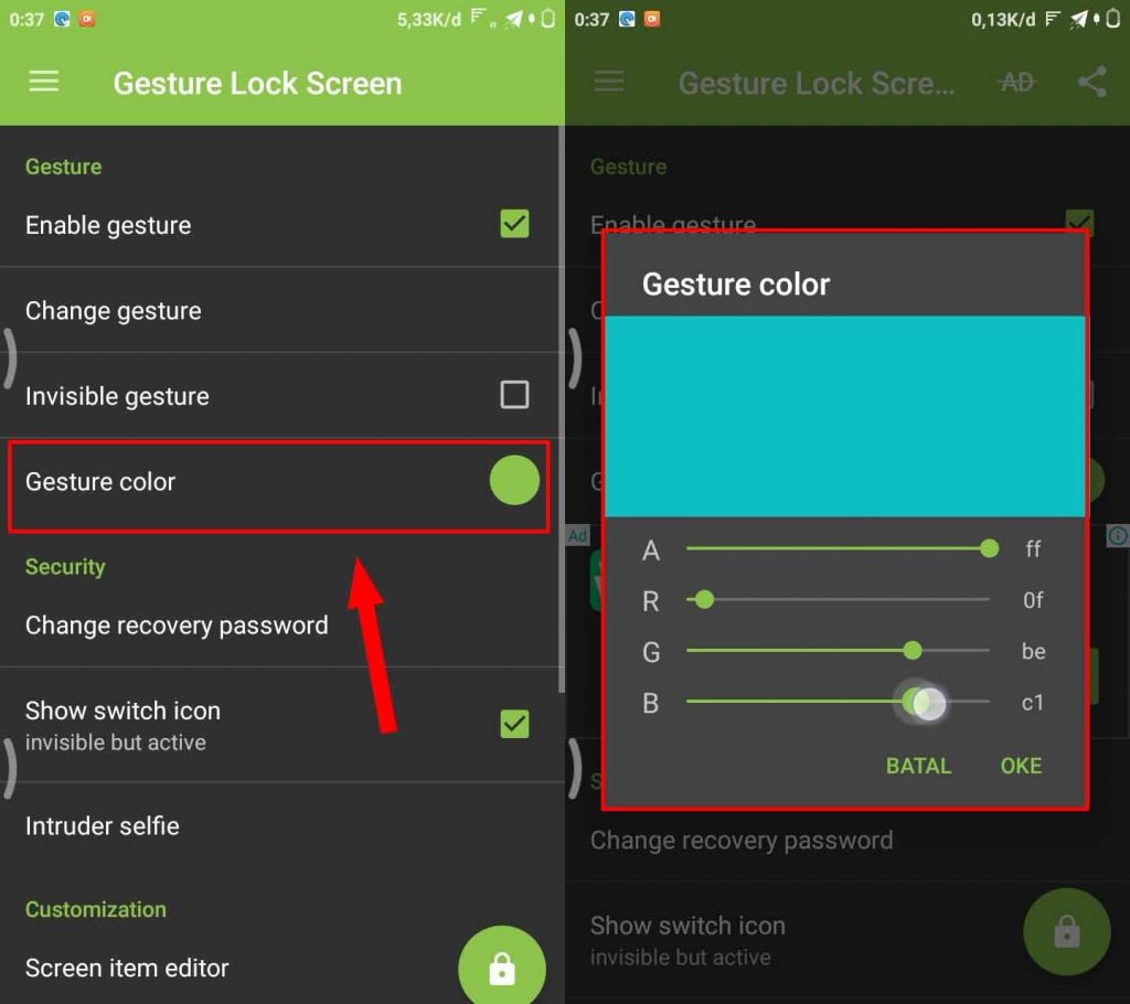 7. Tap pada Gesture color untuk mengganti warna gesture yang sudah kamu buat.
