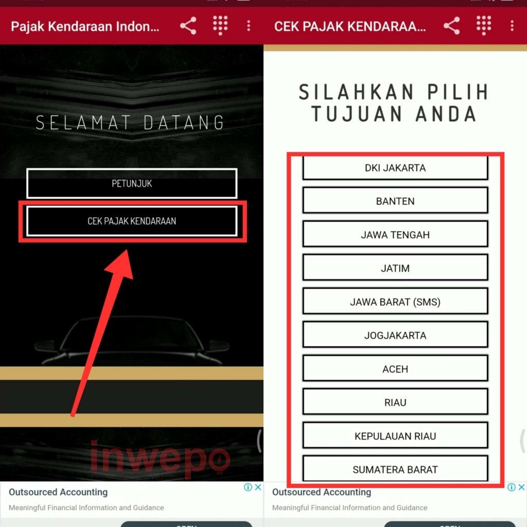 2. Jika sudah terinstall langsung saja buka aplikasinya dan pilih menu Cek Pajak Kendaraan. Berikutnya pilih daerah dimana kamu tinggal atau sesuai dengan nomor polisi atau plat kendaraan kamu.
