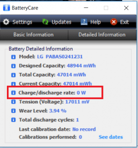Maksud dari charge/discharge rate adalah aliran arus listrik yang dialirkan ke dalam baterai, jika nilainya 0 maka arus listrik langsung dialirkan ke laptop kamu, jika nilainya negatif maka laptop mengambil daya dari baterai dan dalam kondisi tidak di charge, dan jika nilainya positif atau lebih dari 0 berarti dalam keadaan charge pada umumnya.