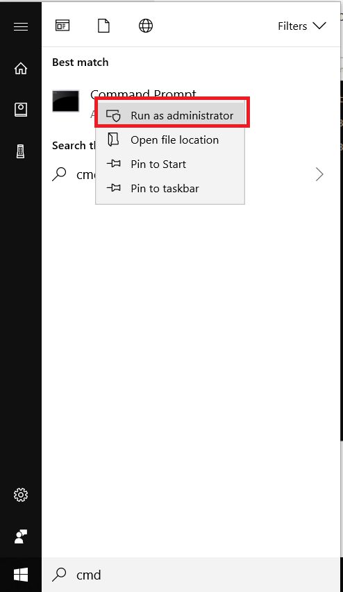 1. Kamu buka CMD melalui Run as administrator melalui kolom pencarian di start menu.