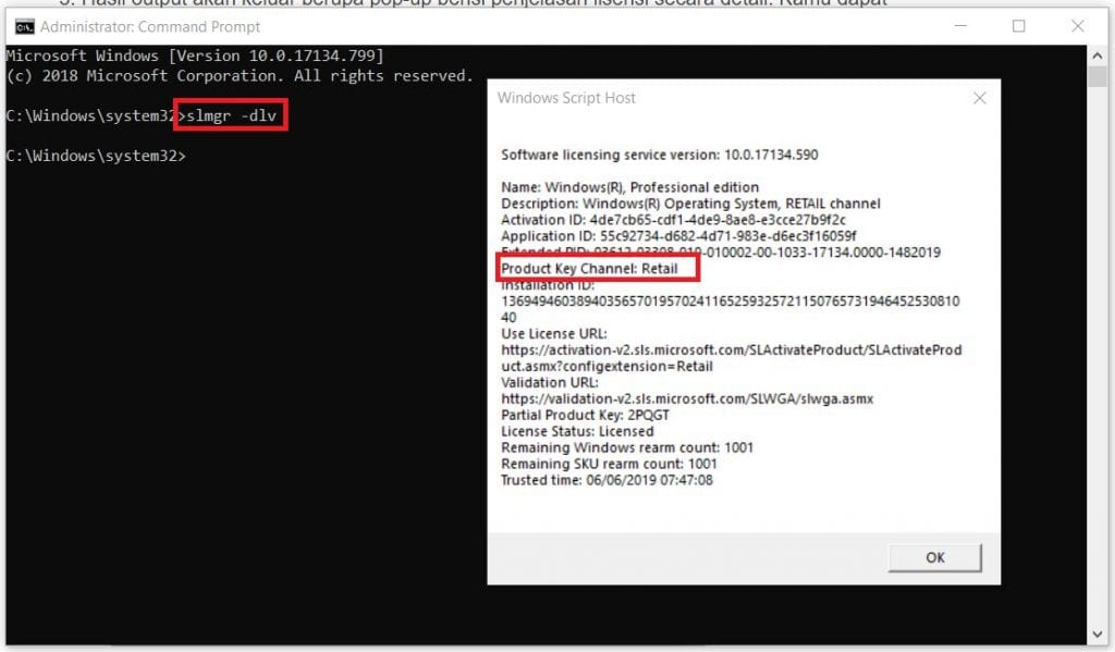 3. Tunggu beberapa detik dan akan muncul layar baru yang menampilkan jenis lisensi yang kamu gunakan, lihat pada bagian product key channel disana menjelaskan jenis lisensi kamu.