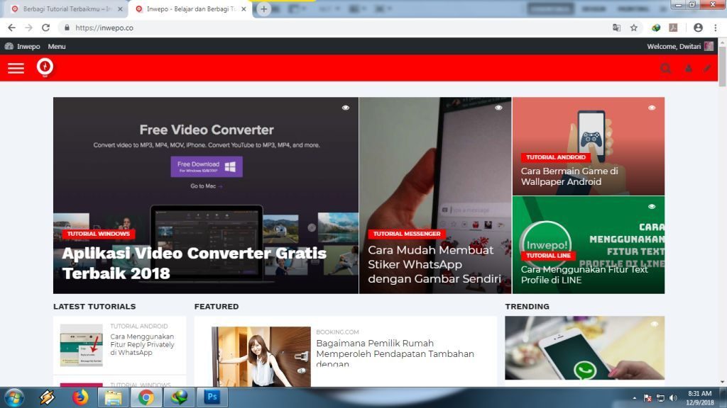 2. Ketikkan situs web yang ingin kamu kunjungi, tekan enter. Tunggu sampai muncul tampilan homepage.
