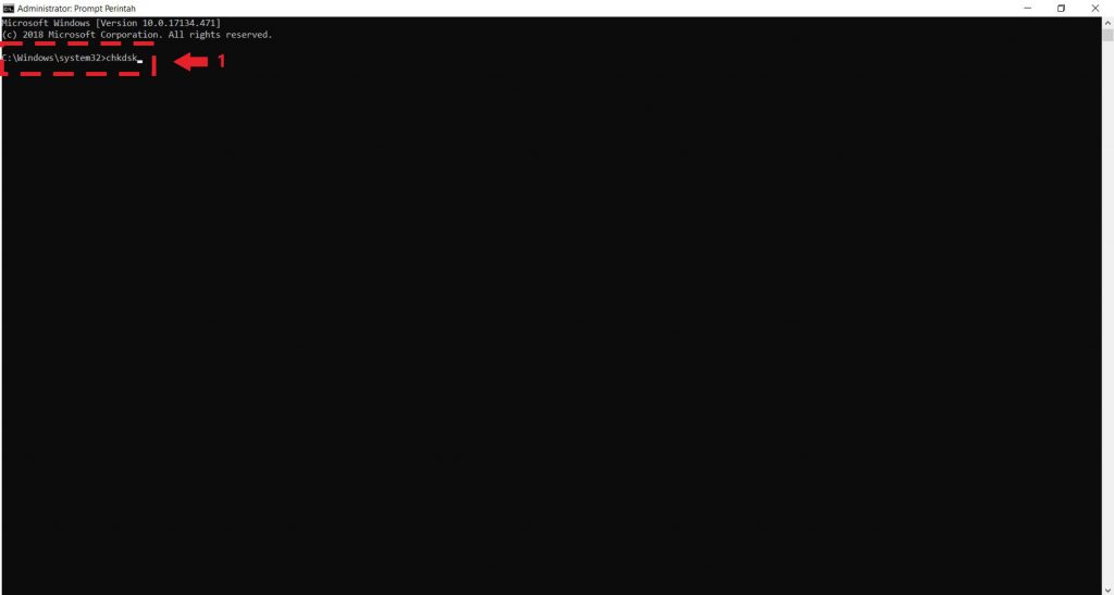 3. Setelah masuk ke menu cmd, ketikkan chkdsk kemudian tekan enter.