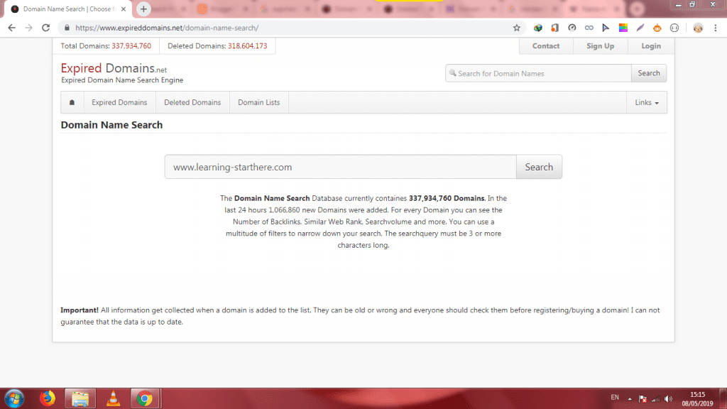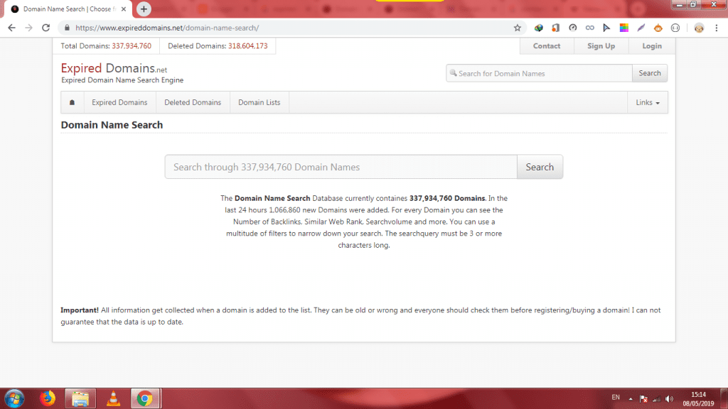 2. Buka situs Expired Domain (https://www.expireddomains.net/domain-name-search/) . Tunggu beberapa saat sampai muncul tampilan homepage.