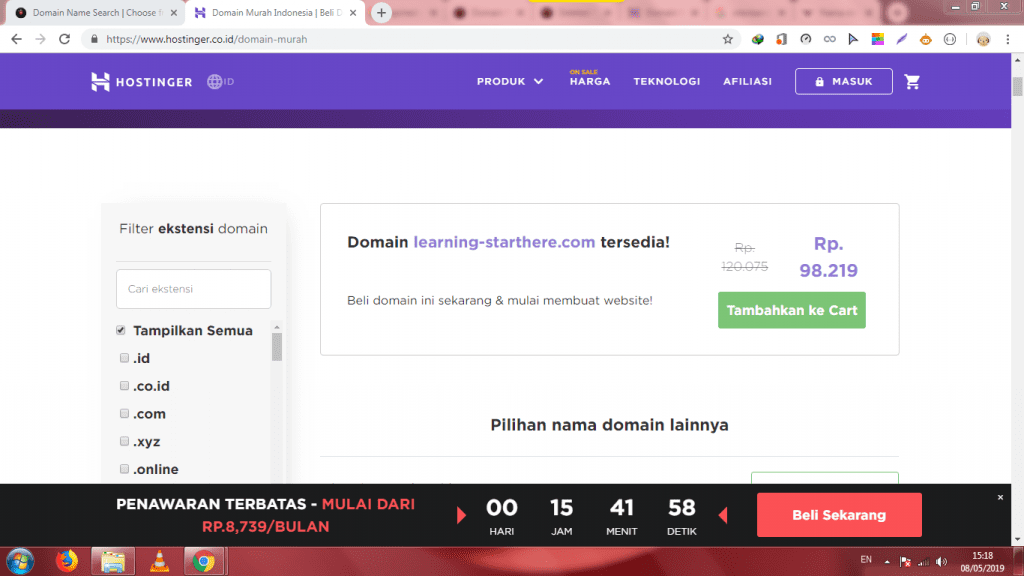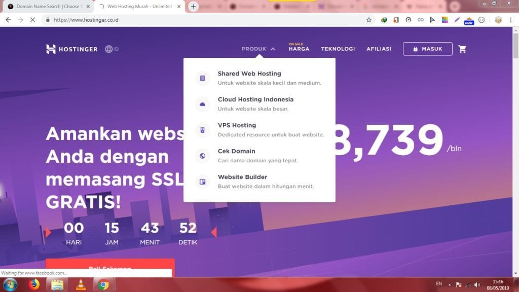 5. Buka situs Hostinger (http://hostinger.co.id). Ini berguna untuk mengecek ketersediaan nama domain yang tadi.