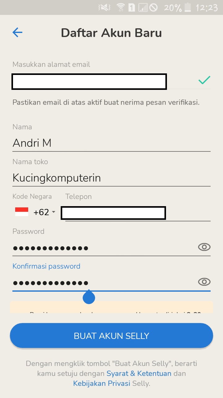 3. Berikutnya, buat akun baru untuk Selly. Isi data sesuai dengan data milik kamu.