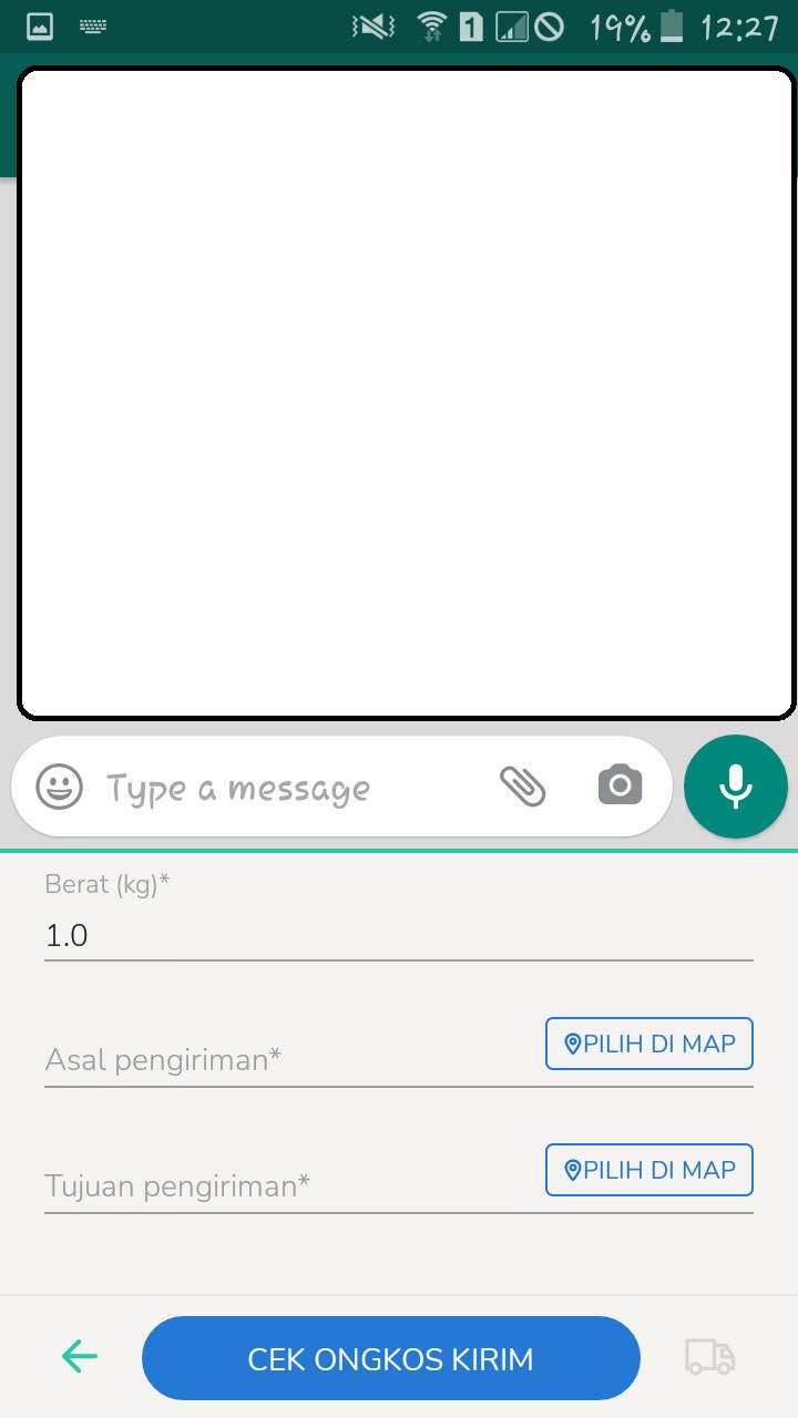 10. Penulis akan coba fitur yang tadi konsen kita di artikel ini pertama kali, yakni fitur cek ongkir. Tekan menu tersebut, dan tentukan berat barang yang akan dikirimkan.