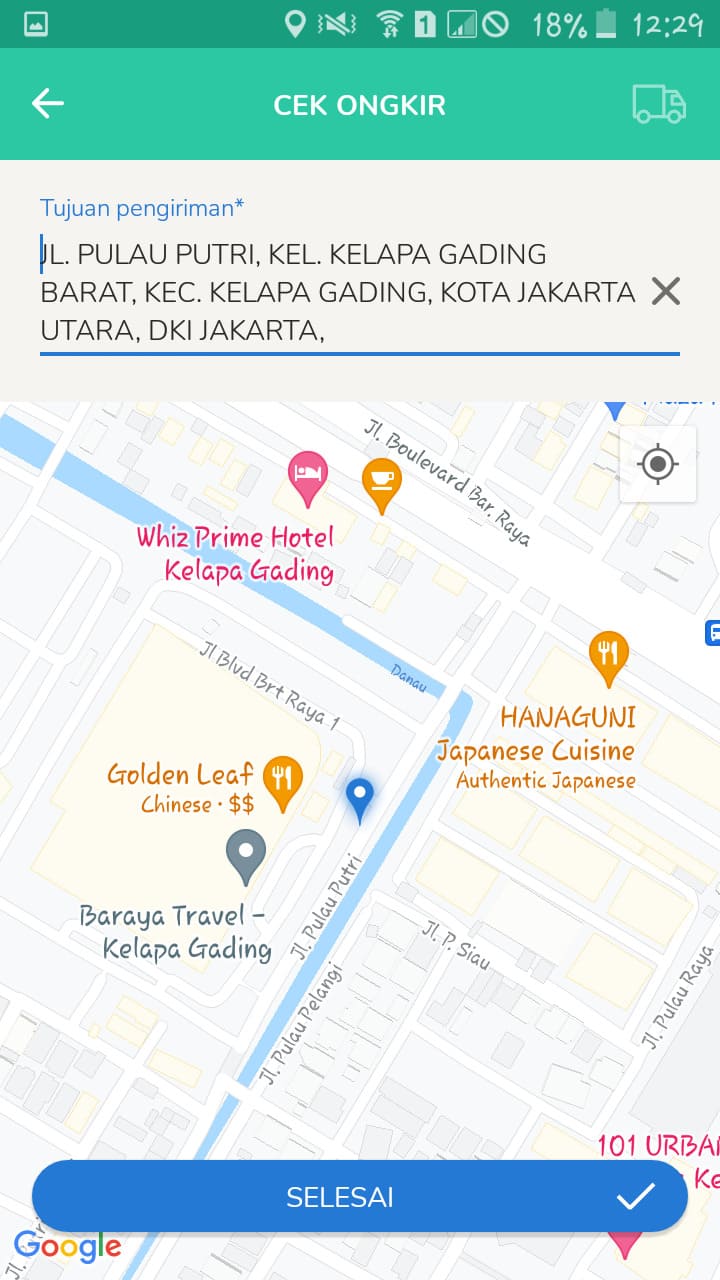 12. Lakukan hal yang sama pada alamat tujuan. Sesuaikan dengan alamat pelanggan ya, setelah pilih Selesai.