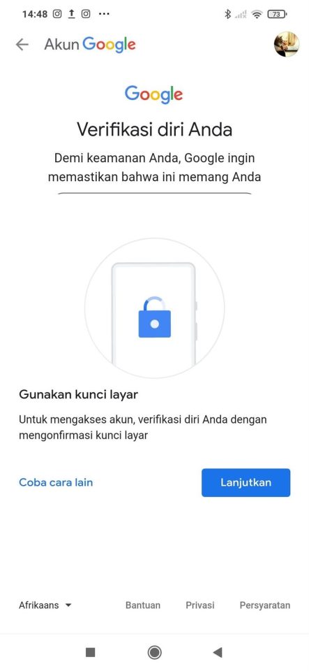 7. Lakukan verifikasi Sandi. Di sini penulis menggunakan sidik jari. Kamu bisa saja menggunakan opsi yang berbeda.