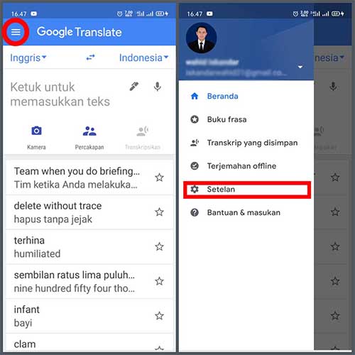 1.Buka aplikasinya piluh menu baris 3 kiri sudut atas kemudian masuk ke setelan, pengaturan maupun setting.