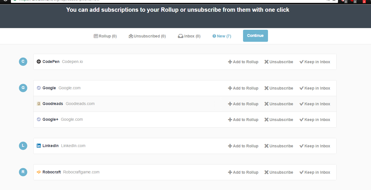 4. Selanjutnya unroll.me akan scan berapa jumlah langganan kita.