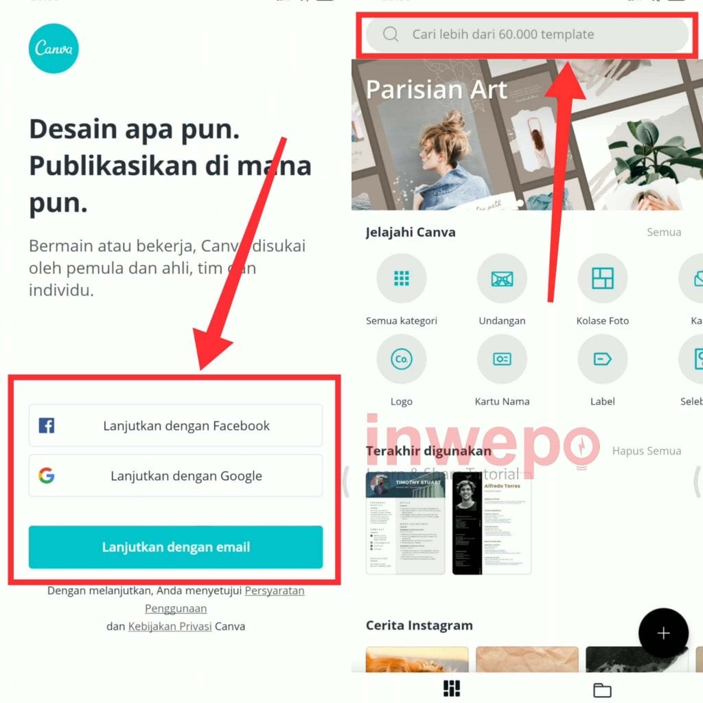1. Download dan install terlebih dahulu aplikasi Canva.