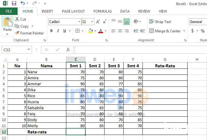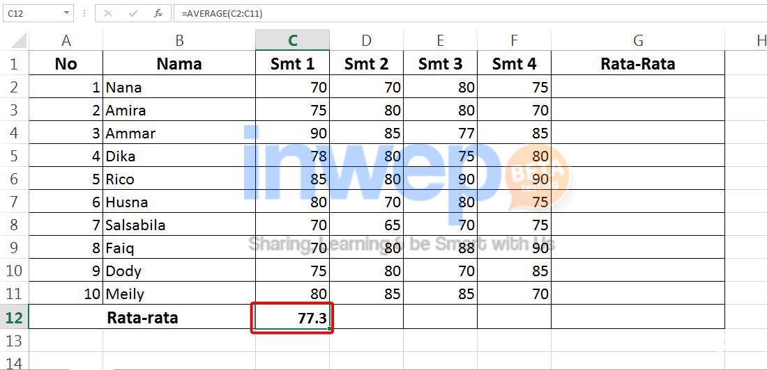 Fungsi yang akan digunakan adalah fungsi average. Fungsi ini digunakan untuk mencari besaran nilai rata-rata dari kumpulan data dalam periode tertentu atau sekelompok data. Inwepo akan membantu kamu untuk menghitung nilai rata-rata menggunakan fungsi average di Microsoft Excel 2013 dengan cepat dan mudah.