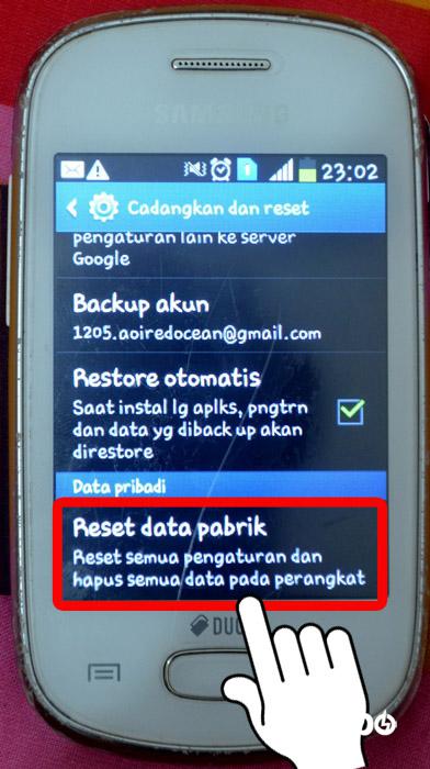 - Pilih pengaturan “Factory Data Reset” atau “Reset Data Pabrik”