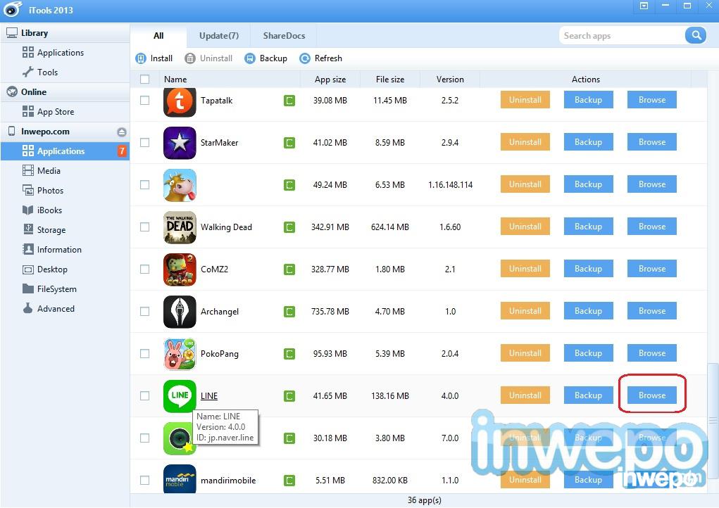 3. Masuk ke menu Applications, LINE dan pilih Browse.
