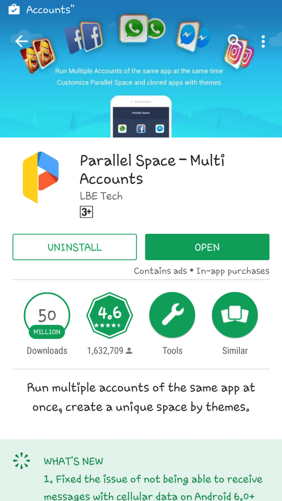 Apa itu “Parallel Space”? Parallel Space adalah salah satu aplikasi yang memiliki fungsinya adalah mengkloning aplikasi yang kita butuhkan. Sebenarnya ada banyak cara untuk membuat aplikasi kloningan baik yang terdapat di PlayStore maupun dari internet. Menurut saya aplikasi ini cukup mudah dan menyenangkan dalam penggunaannya karena tidak memerlukan akses root. Kamu juga akan merasa kalau memiliki Smartphone di dalam Smartphone. Aplikasi ini juga dilengkapi dengan security (password), cleaning, theme app, dll. Parallel Space tersedia di Indonesia dan dapat kita download secara gratis di Google PlayStore.