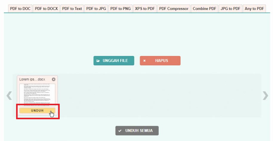 3. Tunggu proses uploading dan proses konversi yang dilakukan situs tersebut, jika sudah, maka tombol loading akan berubah menjadi tombol download – klik tombol download tersebut.