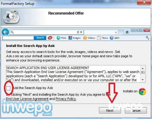 4. Hilangkan centang install toolbar, lalu “Next”.