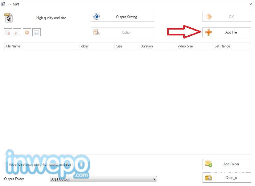 8. Klik tombol “Add File” untuk mengambil video yang ingin di convert.