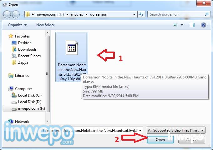 9. Pilih lokasi file video berada, lalu klik tombol “open”. (kamu dapat sekaligus menambahkan video lebih dari 1 video)