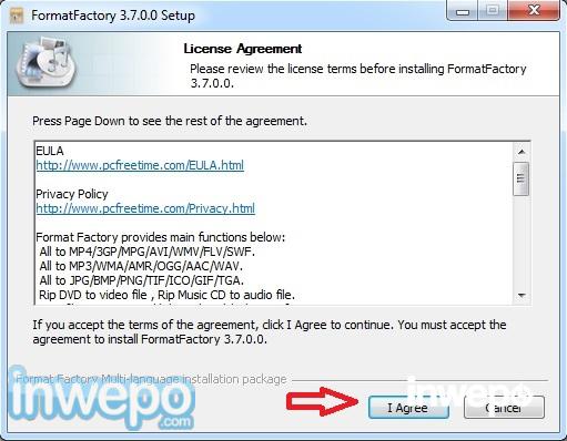 2. Install format factory di komputer windows kamu, pilih tombol “I Agree”.