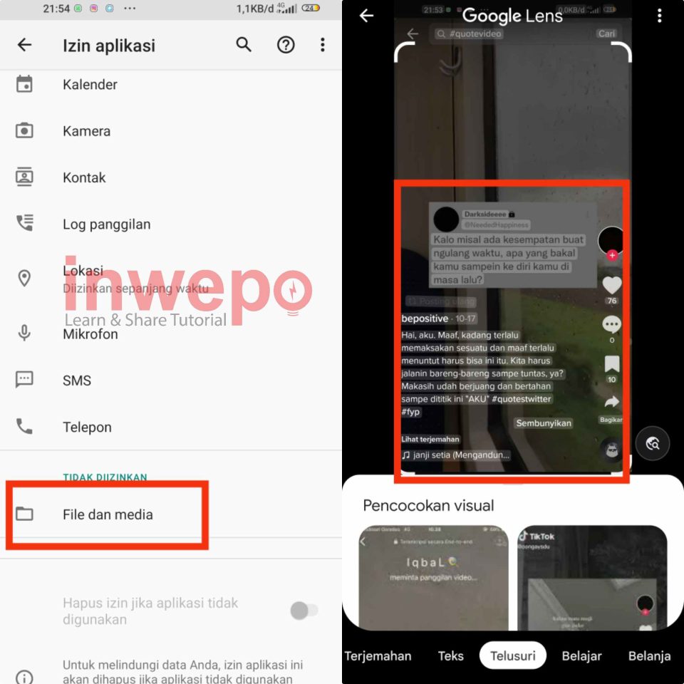 4. Pada menu Izin aplikasi tap File dan media, ubah aksesnya menjadi diizinkan. Selanjutnya tunggu proses scanning pada Google Lens.
