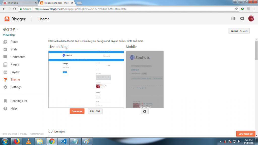 6. Klik Tema atau Theme – Klik Edit HTML. Tunggu beberapa saat.