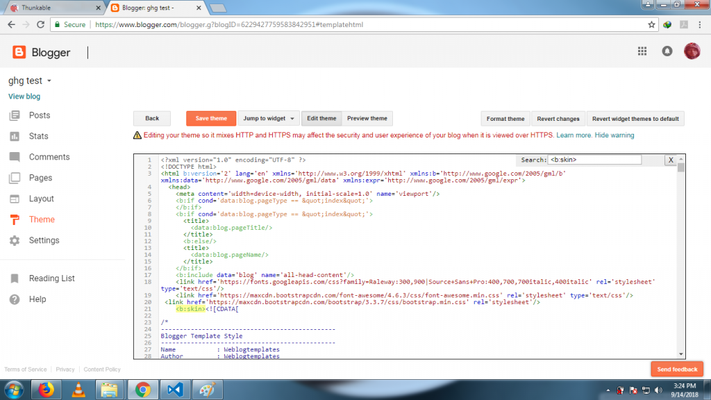 9. Klik Save Theme untuk menyimpan perubahan kode script tadi.
