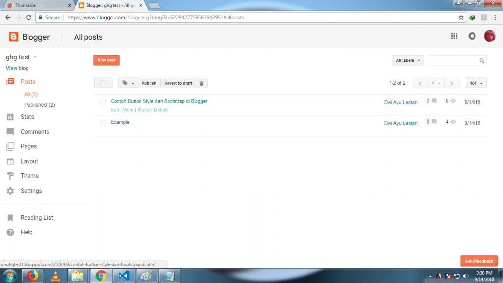 15. Silahkan klik Views pada judul posting yang tadi. Lihat hasilnya.