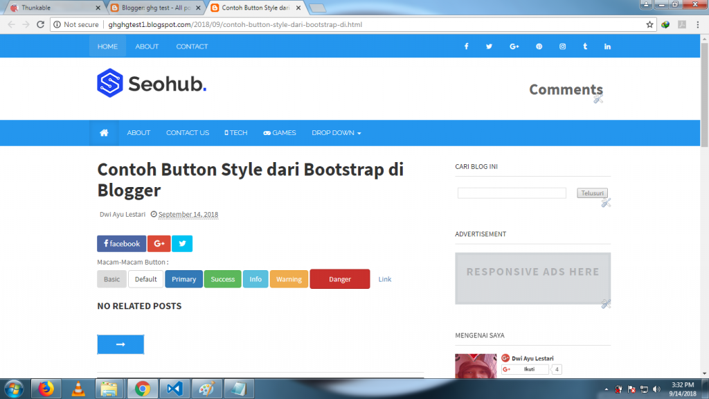Demikian tutorial cara custom button style dengan Bootstrap di Blogger. Selamat mencoba.